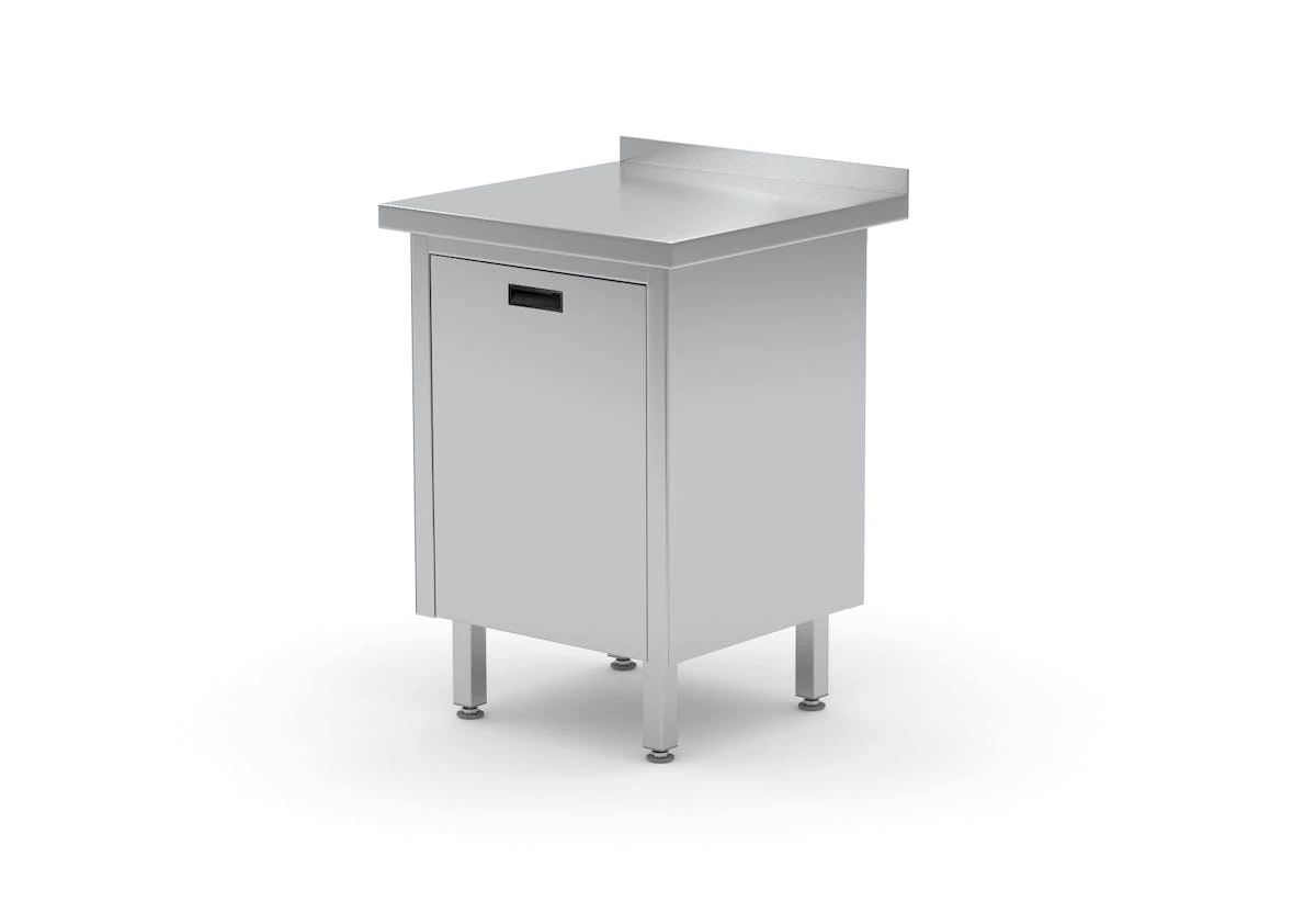 Der Gastro-Arbeitstisch mit 1 Klapptür (schmal) mit schwenkbarem Behälter wird aus rostbeständigem Stahl AISI 430 hergestellt und erfüllt alle erforderlichen funktionellen Anforderungen der professionellen Gastronomie. Das Innere der Tischplatte ist mit einer wasserdichten und laminierten Schichtstoffplatte gefüllt und hat eine Aufkantung von 4cm. Der Tisch ist zudem mit verstellbaren Füßen ausgestattet, die für zusätzliche Flexibilität sorgen. Ausreichend Kapazität bzw. Stauraum erzeugt die Klapptüre unterhalb der Tischplatte. Erhältlich ist der Tisch in mehreren Größen, die sich jeweils in der Tiefe unterscheiden.