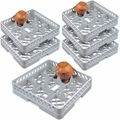 Null Spülkorb Für Geschirr Und Gläser, LxB 500 X 500 Mm, Grau, Lichtes Fachmaß 62 X 62 Mm, 49 Fächer